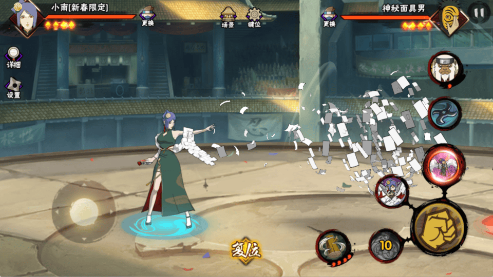 对于那些拥有黑绝的玩家来说,新春小南加上忍体术御秘卷的组合,再搭配一些瞬发通灵和蛞蝓回血,无疑是一套极为稳健的打法。前期利用瞬发通灵抢节奏换忍者,中期依靠蛞蝓回血保持优势,后期则可用鲨鱼加快输出速度,拉回血量差。即便没有黑绝,仅凭忍体术御和新春小南的组合,也足以让对手头疼不已。