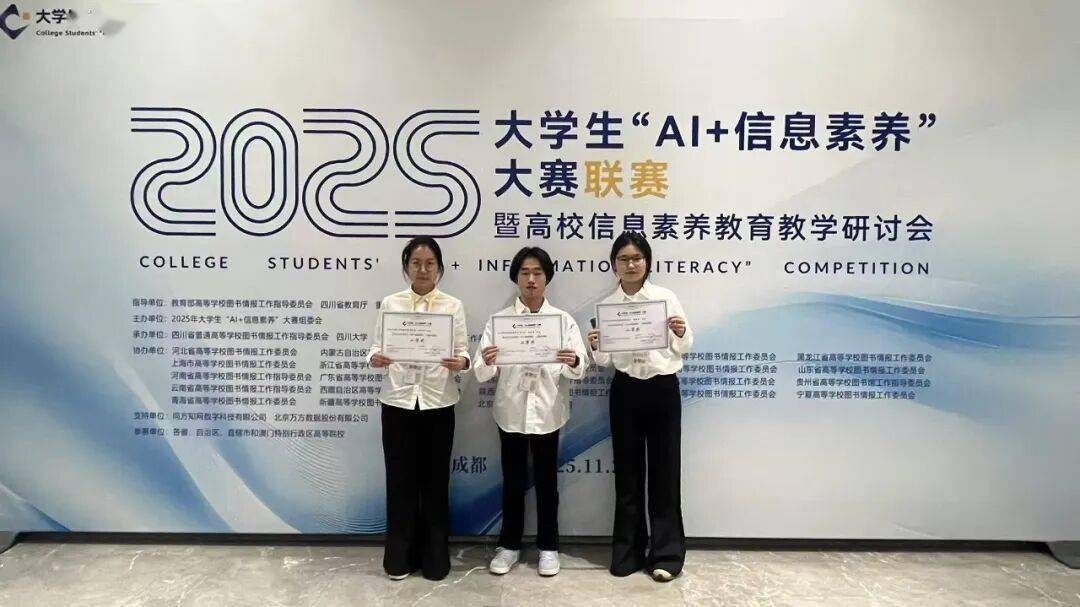 近日,一场聚焦“AI+信息素养”的全国性赛事在成都落下帷幕。这场由教育部高等学校图书情报工作指导委员会指导、2025年大学生“AI+信息素养”大赛组委会主办的联赛,吸引了全国31个省、自治区、直辖市及澳门特别行政区的1355所高校参与,报名学生人数高达43.9万,实际参赛人数达35.9万。在这场高手云集的较量中,一支来自某高校的学生团队凭借出色的表现脱颖而出,斩获全国二等奖。