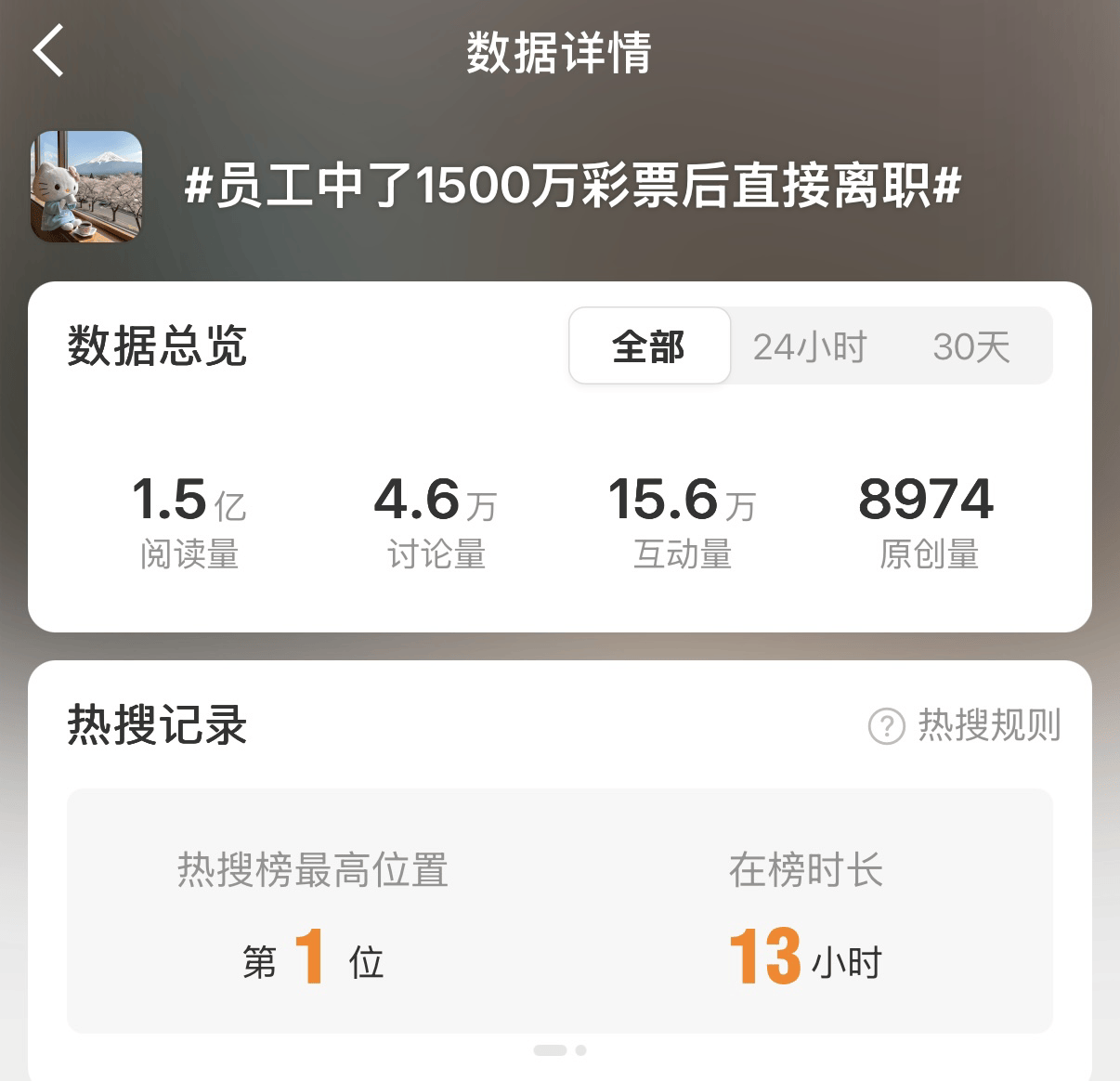 近日,一则关于科大讯飞员工中得巨额彩票后火速离职的消息在网络上引发轩然大波,迅速成为社交平台热议焦点。据传,该员工购买彩票后幸运斩获1500万元奖金,随即向公司提交离职申请,未完成工作交接便放弃工资奖金潇洒离去。这一戏剧性情节被网友戏称为“最潇洒赎身”,相关话题在微博冲上热搜榜首,阅读量突破1.5亿次,评论区俨然成为职场人的“白日梦狂欢场”。
